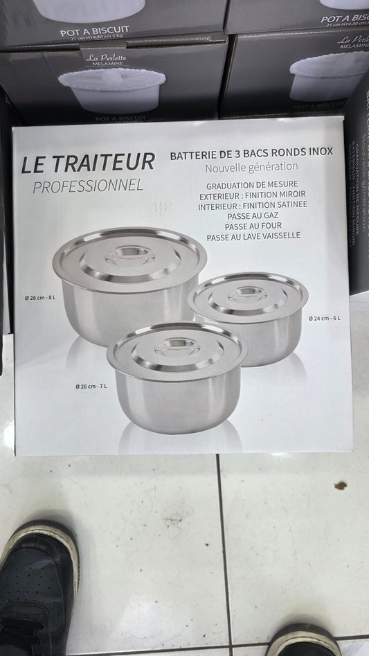 Ensemble de 3 produits professionnel : marmite 24 cm+ faitout 28 cm+ sautoir 36cm